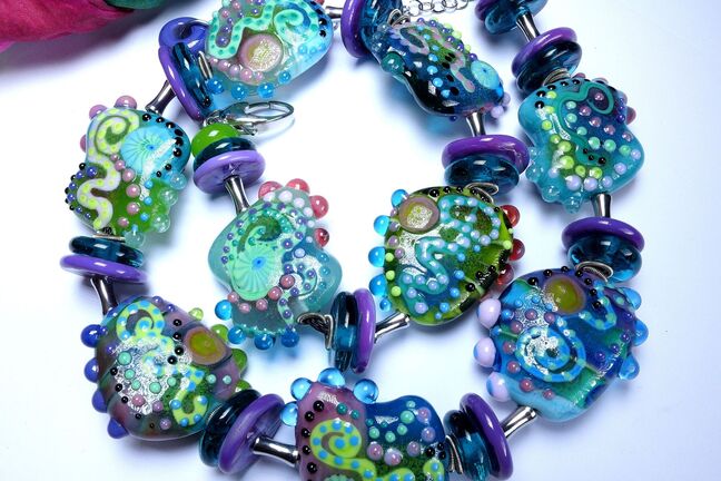 Lampwork Glasperlen, kunstvolle Glasketten, individuelle Glasarmbänder, stilvolle Ohrringe und Ringe aus Glas, jedes Stück ein liebevoll gefertigtes Unikat.