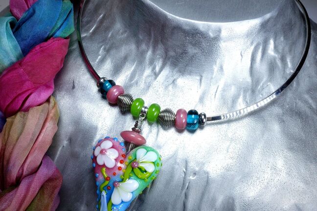 Lampwork Glasperlen, kunstvolle Glasketten, individuelle Glasarmbänder, stilvolle Ohrringe und Ringe aus Glas, jedes Stück ein liebevoll gefertigtes Unikat.